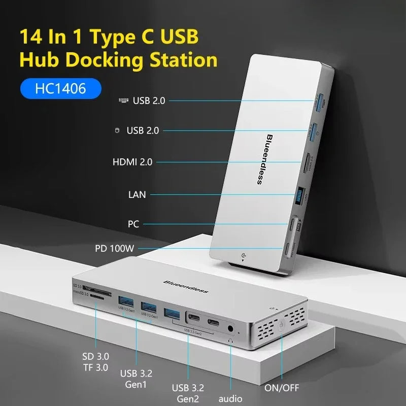 14 in 1 Type C USB Hub Docking Station USB 3.0 Card Reader