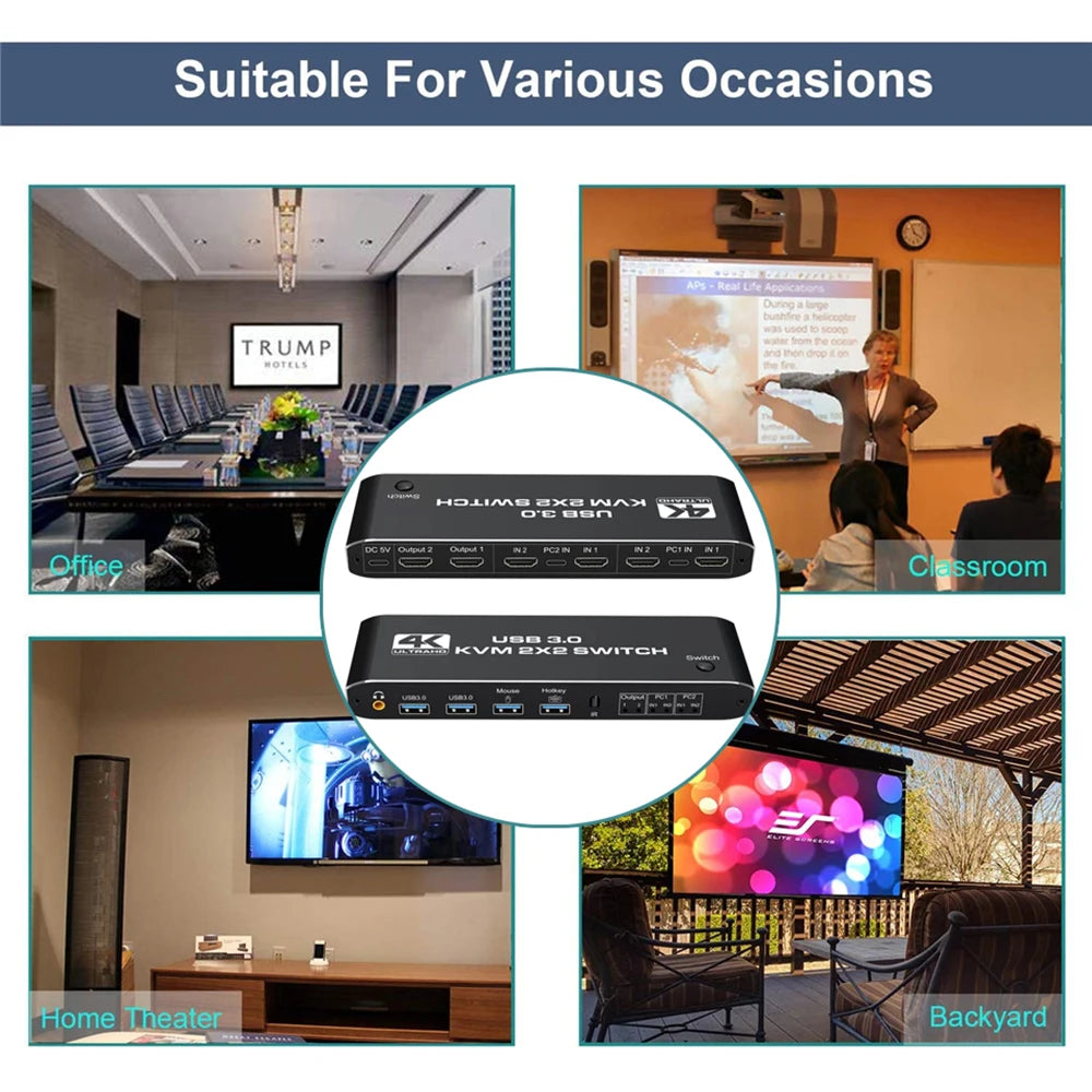 Dual Computer KVM Switch, Dual Monitor, 4K 60Hz High Resolution